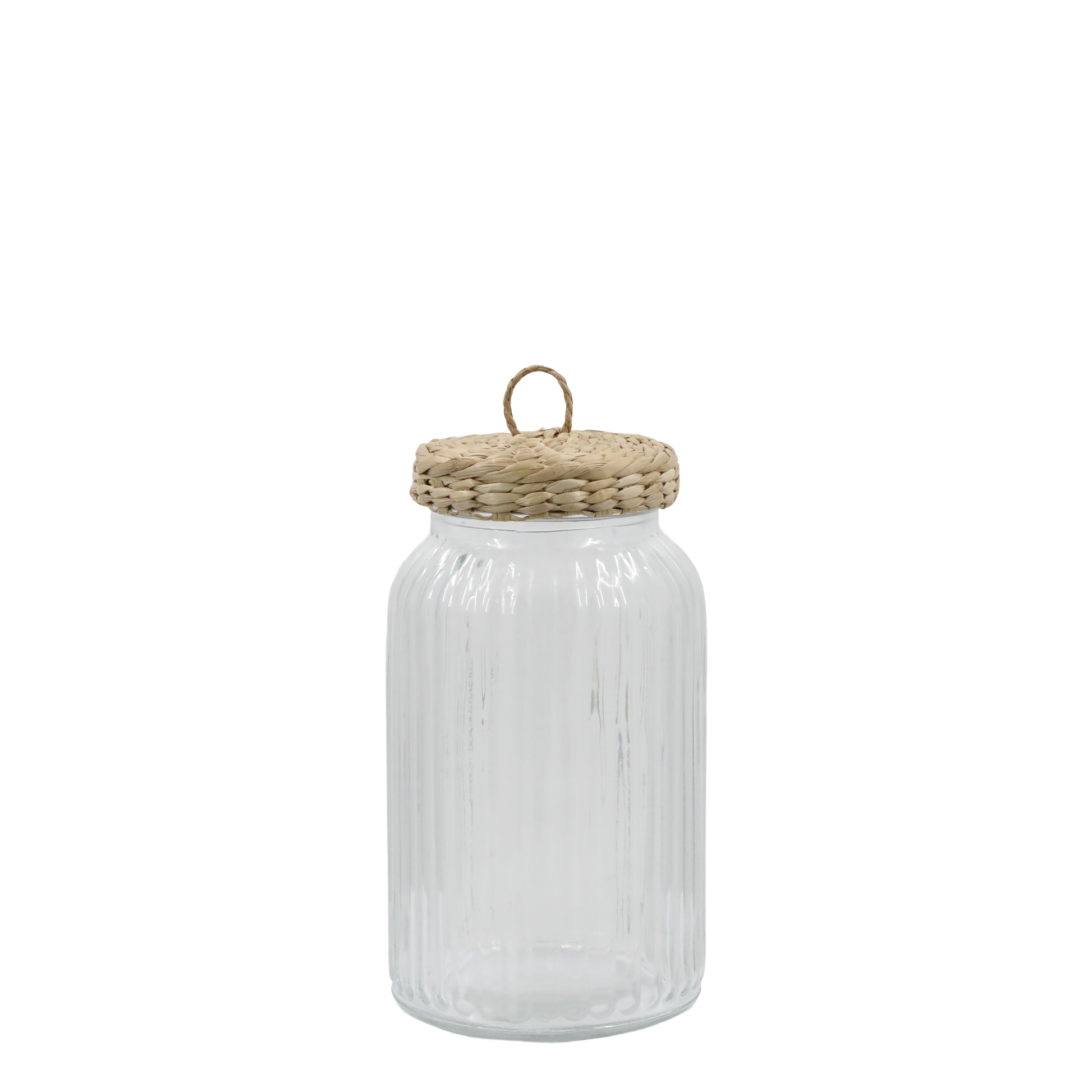 Alliez style et praticité avec ces bocaux en verre cannelé, parfaits pour une cuisine soignée et chaleureuse. Leur couvercle tressé à visser leur apporte un charme naturel. Disponibles en deux tailles et compatibles lave-vaisselle (Hors couvercle).