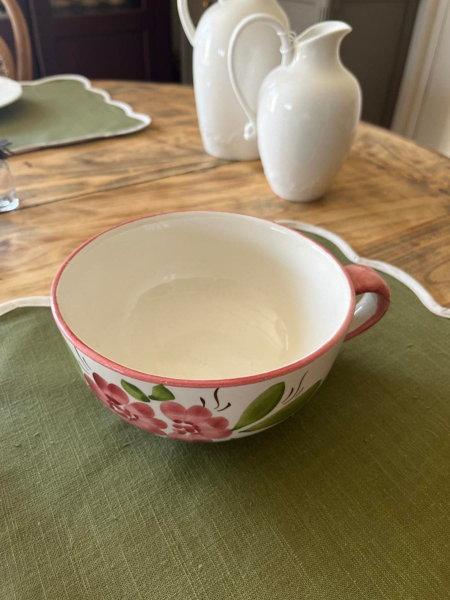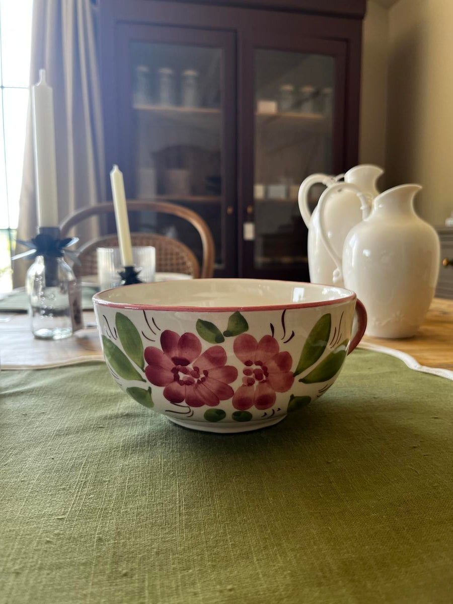 Ce grand bol en céramique fleuri est idéal pour servir des sauces ou pour le petit déjeuner. Fabriqué en Italie et peint à la main, ce bol vintage apportera une touche d'élégance à votre table grâce à son design unique. Avec son anse pratique, il est facile à manipuler et à ranger. Ajoutez une touche de vintage à votre cuisine avec ce bol en céramique exceptionnel.Fabriqué en Italie