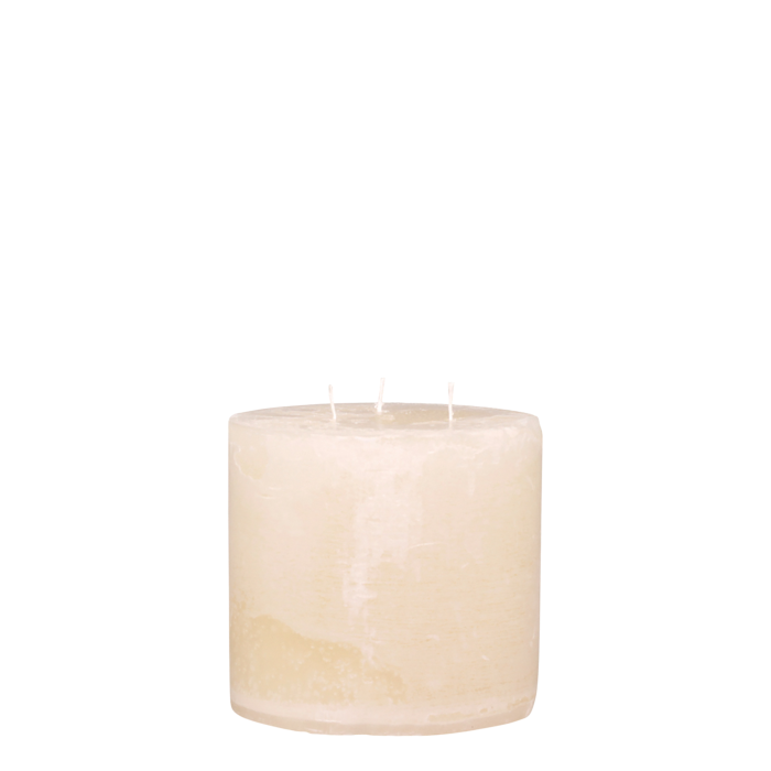 Bougie pilier rustique à 3 mèches, parfaite pour créer une ambiance chaleureuse. Longue combustion de 80 heures.