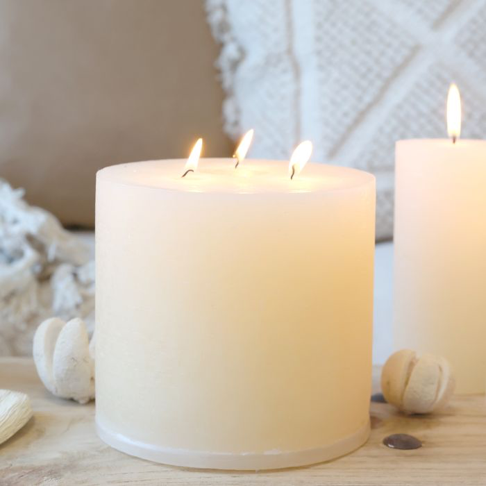 Tout savoir sur notre Bougie pilier rustique à 3 mèches 80h - crème