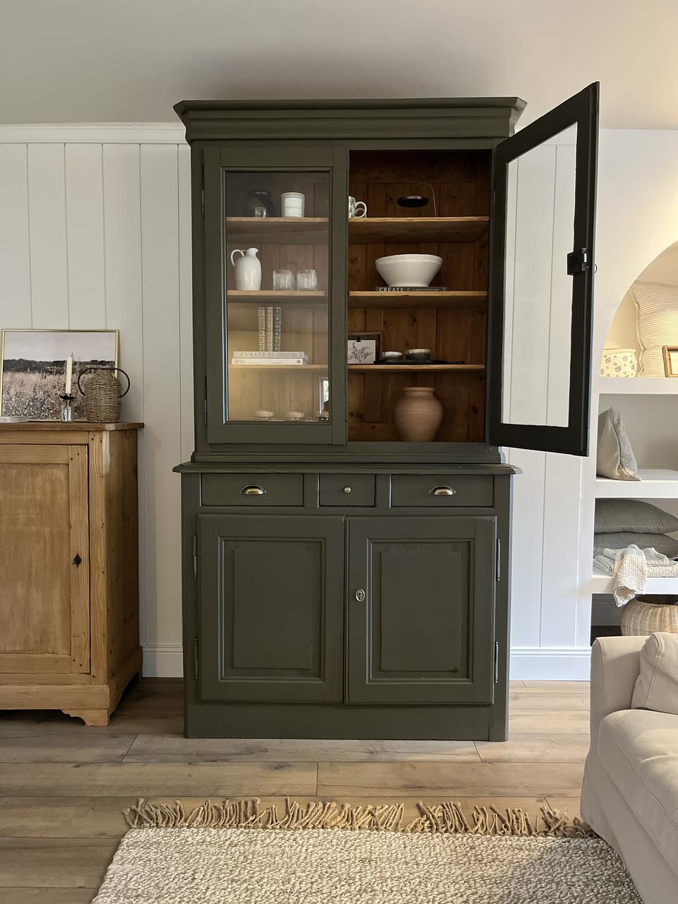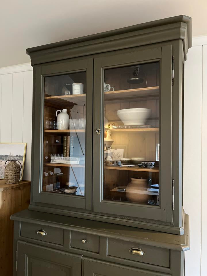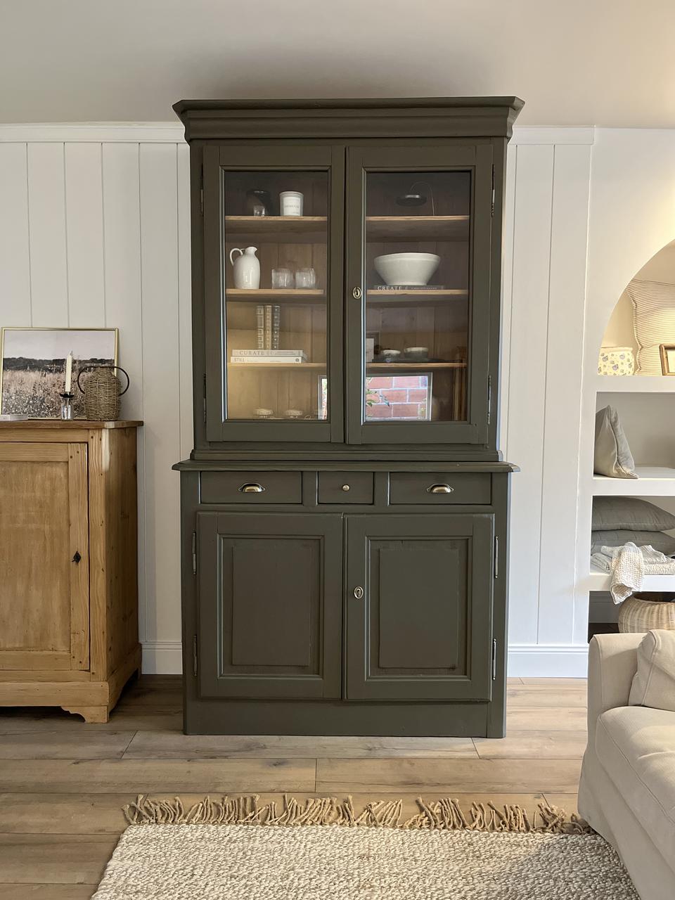 À propos de notre Buffet 2 corps vitré ancien en pin – pièce unique