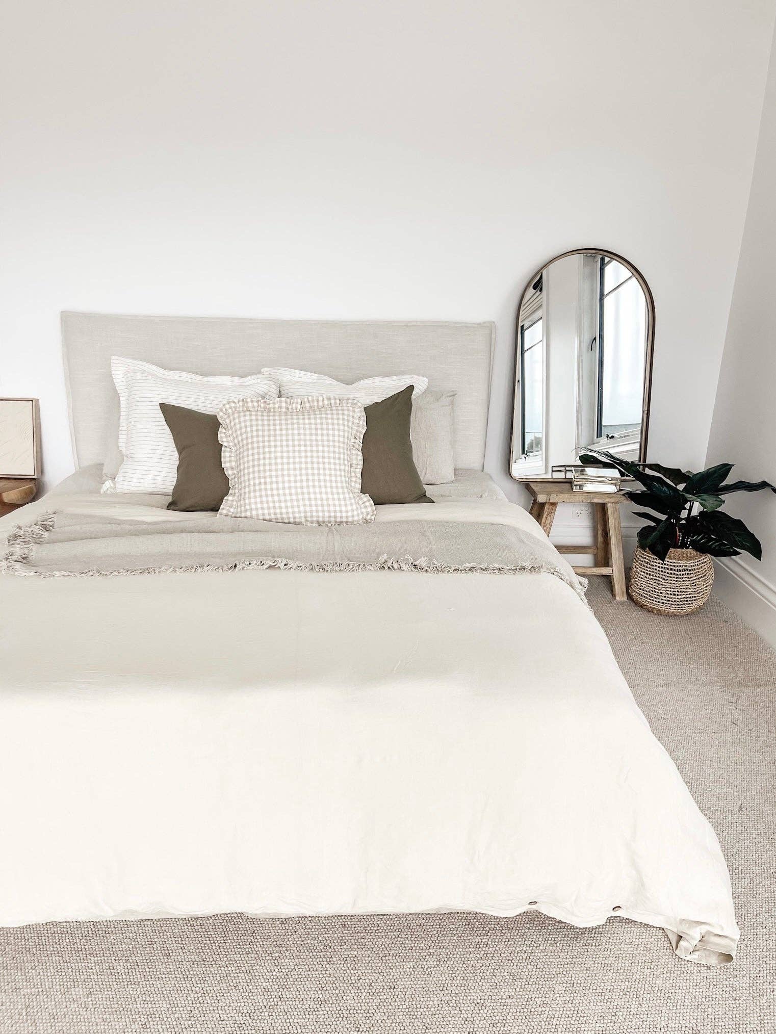 Apportez une touche de charme champêtre à votre intérieur avec ce coussin en lin français vichy beige. Sa housse en 100 % pur lin, offre une texture naturelle et respirante, idéale pour toutes les saisons. Les volants délicats qui l'entourent ajoutent une note poétique et élégante, parfaite pour un esprit cottage, bohème ou classique.