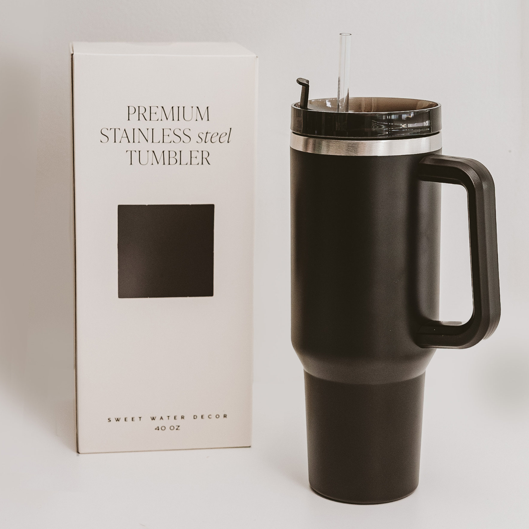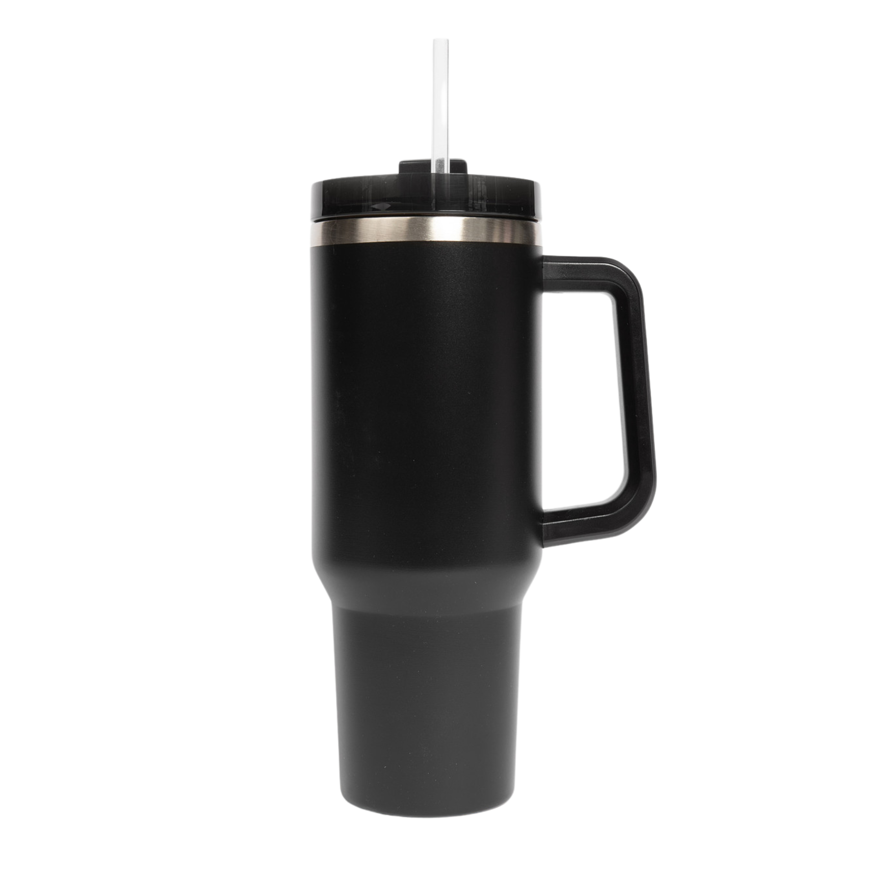 Nos gobelets sont le compagnon idéal pour les journées les plus chargées, grâce à leur poignée facile à transporter et à leur base étroite qui convient à la plupart des porte-gobelets. Parfait pour toutes les occasions, notre gobelet en acier inoxydable de qualité supérieure peut contenir 1,18L de n'importe quelle boisson préférée, la gardant au chaud jusqu'à 8 heures et au froid jusqu'à 24 heures. La paille et le couvercle sont exempts de BPA. De plus, notre couvercle fonctionnel est doté d'un couvercle coulissant à trois positions : une ouverture pour la paille, une ouverture pour boisson et un couvercle complet. DÉTAILS : • Capacité de 40 oz • Couleur : noir • Couvercle et paille sans BPA • Acier inoxydable • Maintient les boissons chaudes jusqu'à 8 heures et froides pendant 24 heures •