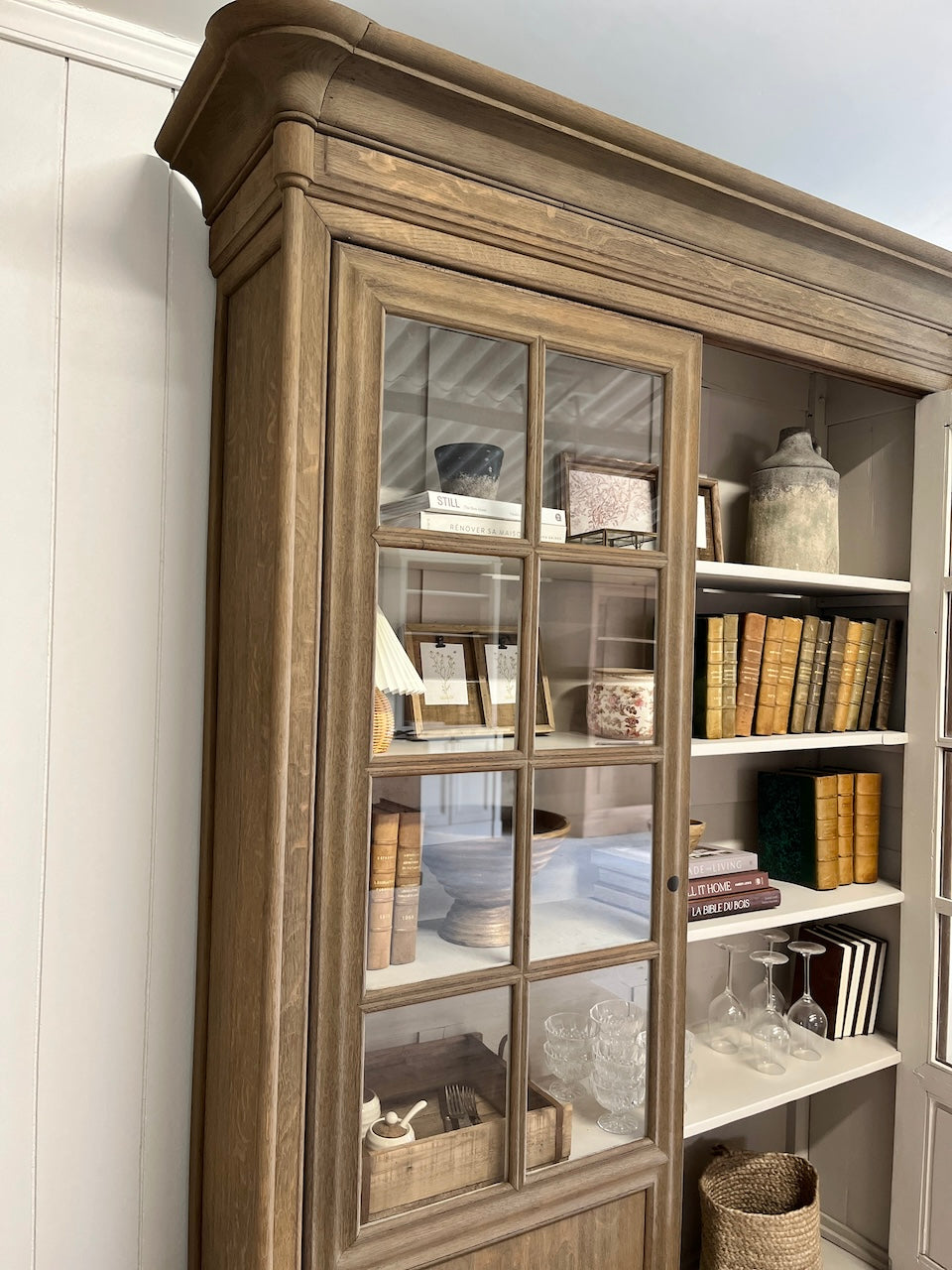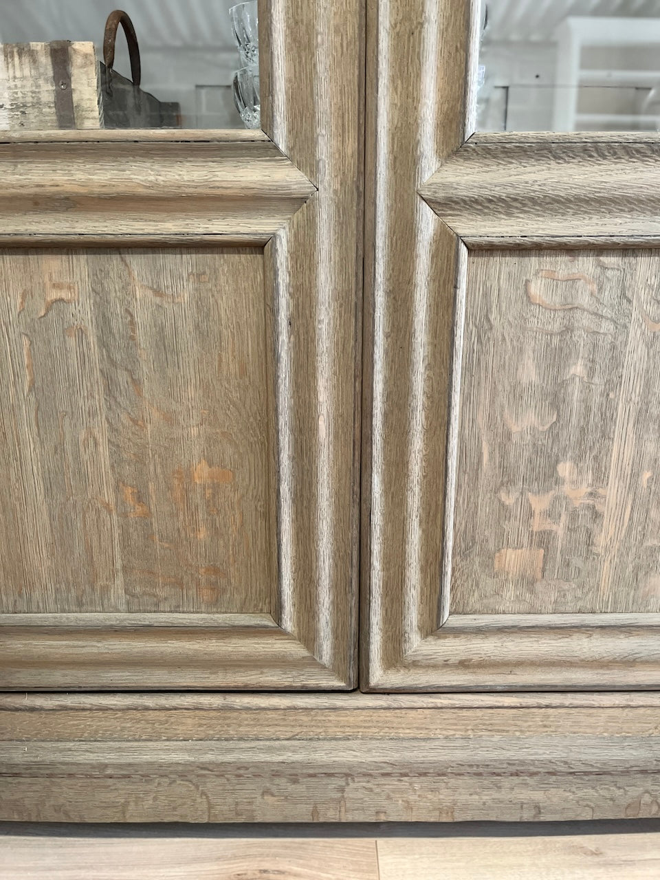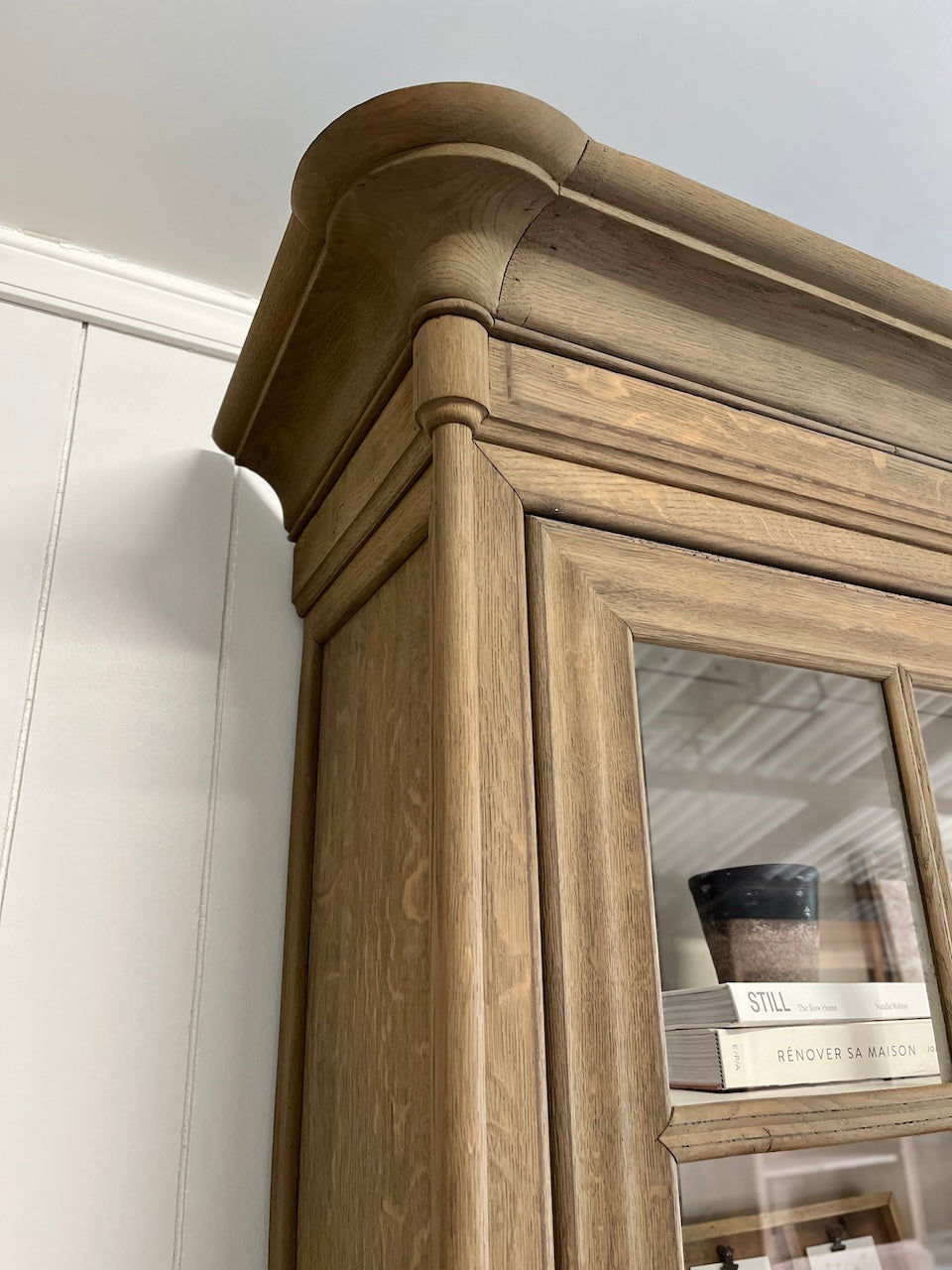 À propos de notre Grande vitrine en chêne massif vieilli