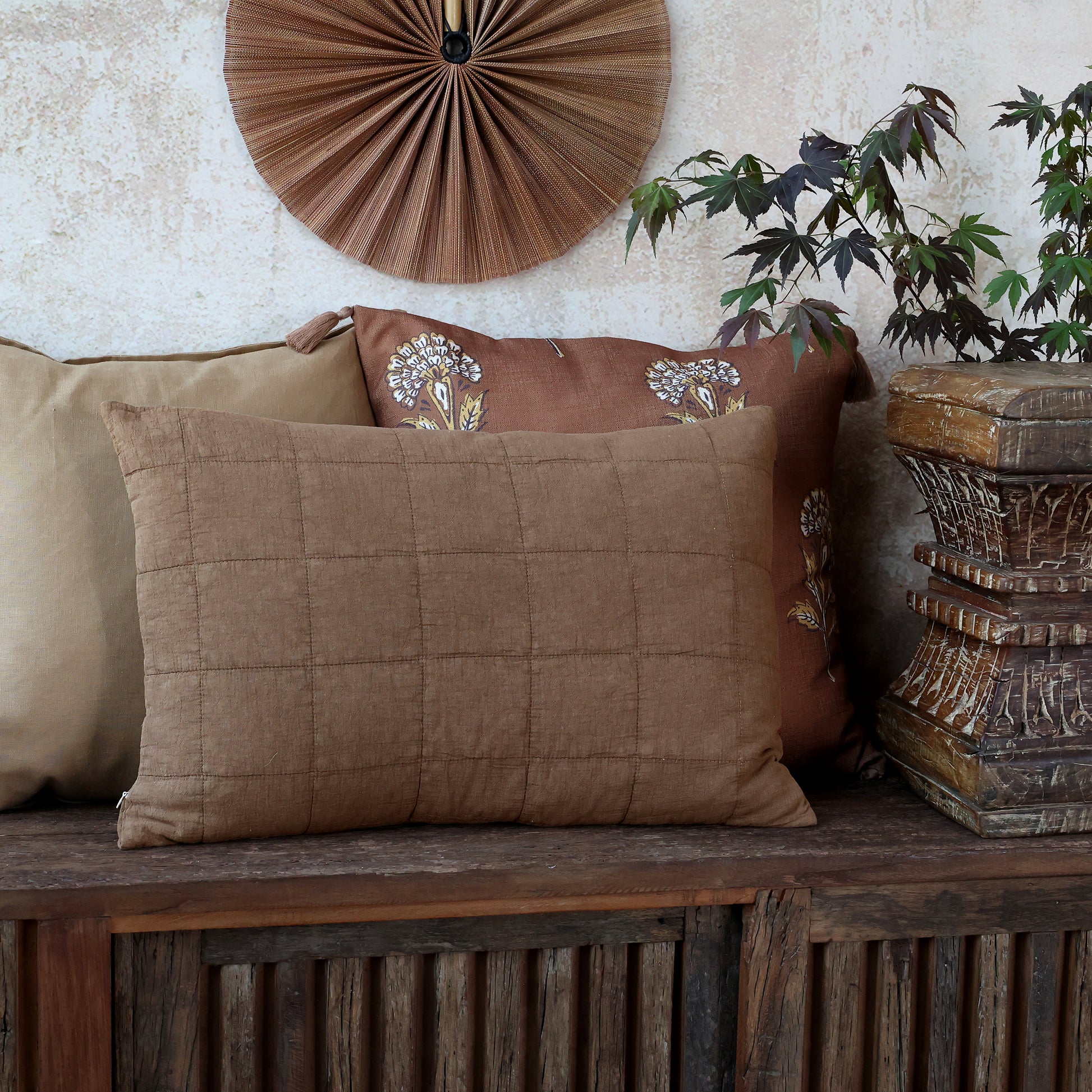 Tout savoir sur notre Coussin en plume avec housse piquée - noyer