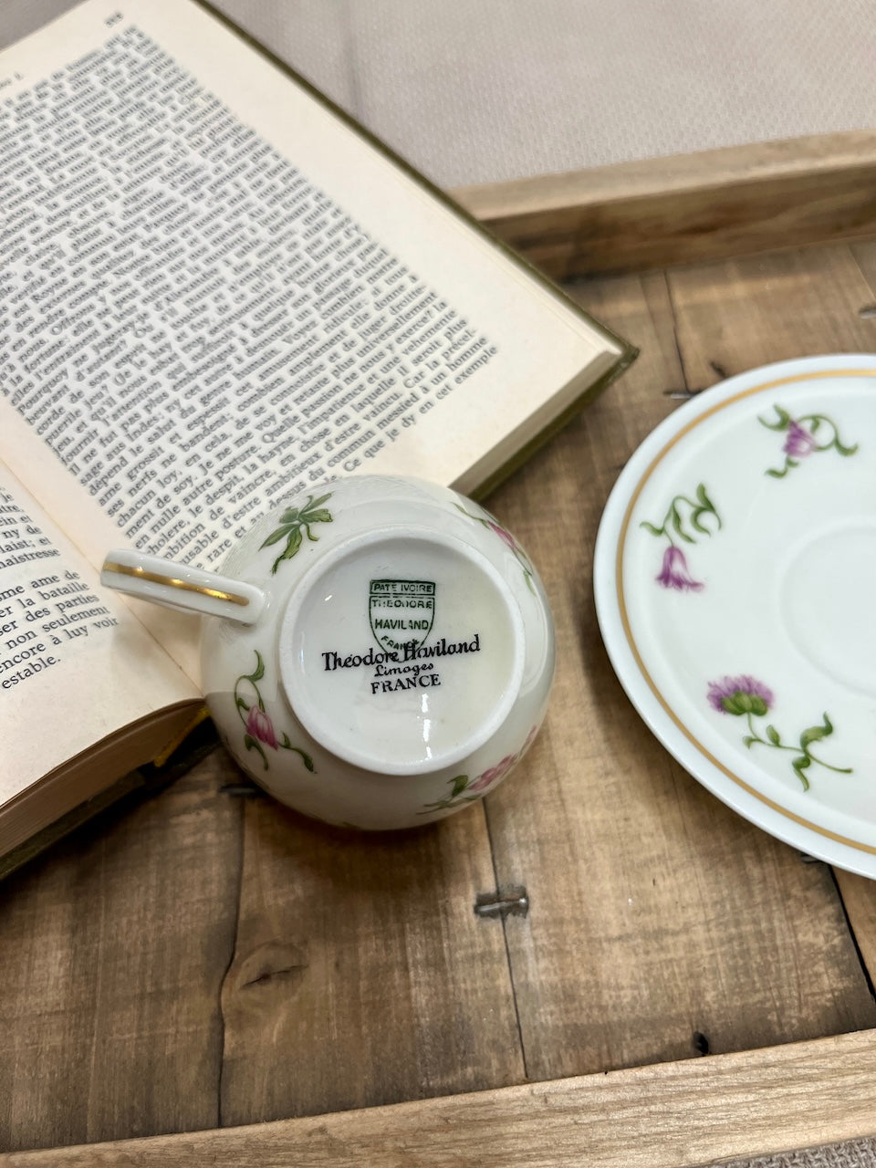 Tout savoir sur notre Lot de tasses à café fleuries mauve en porcelaine de limoges - Théodore Haviland