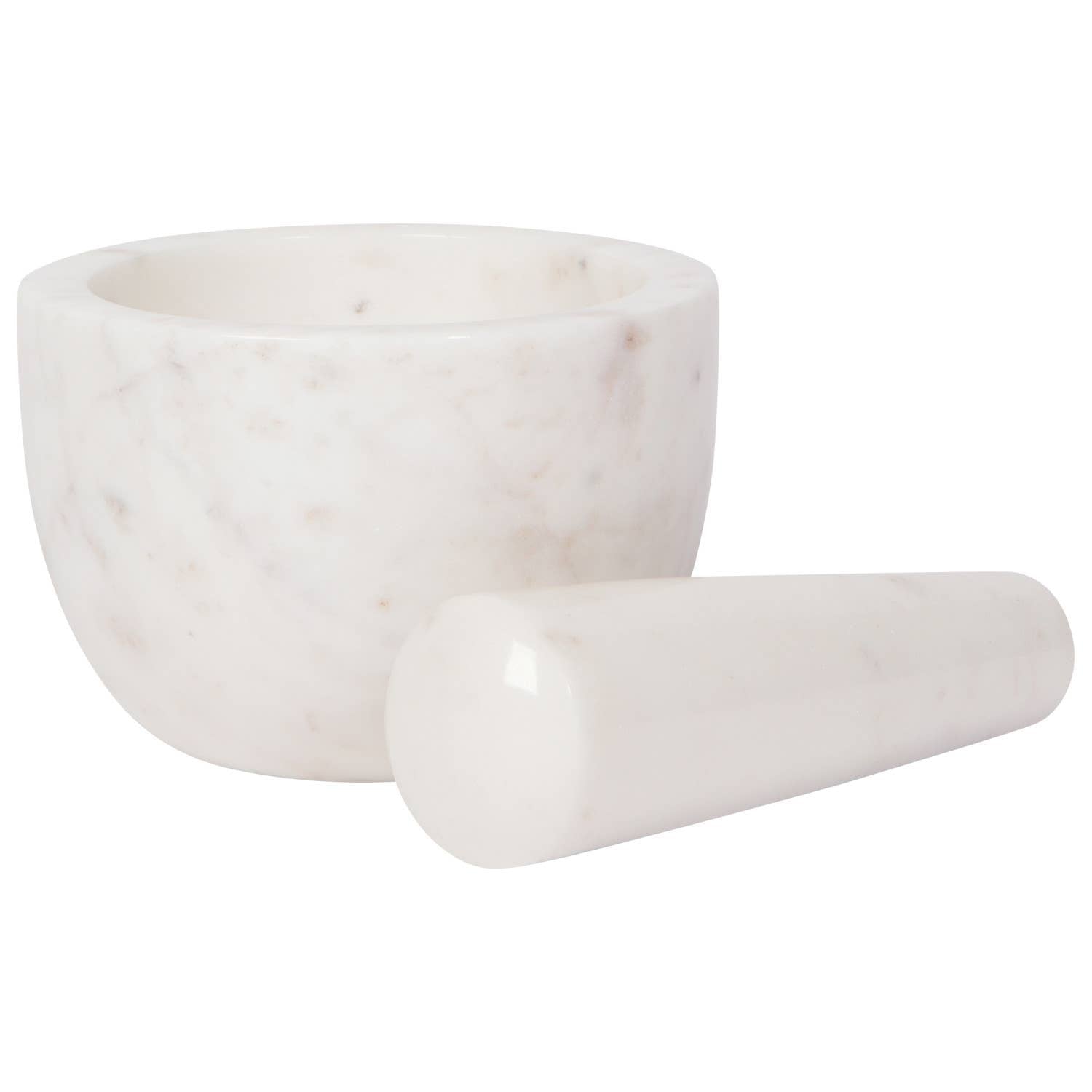 Mortier et pilon en marbre blanc, à la fois élégant et robuste. L’allié idéal pour sublimer vos préparations maison et ajouter une touche chic et intemporelle à la décoration de votre cuisine.