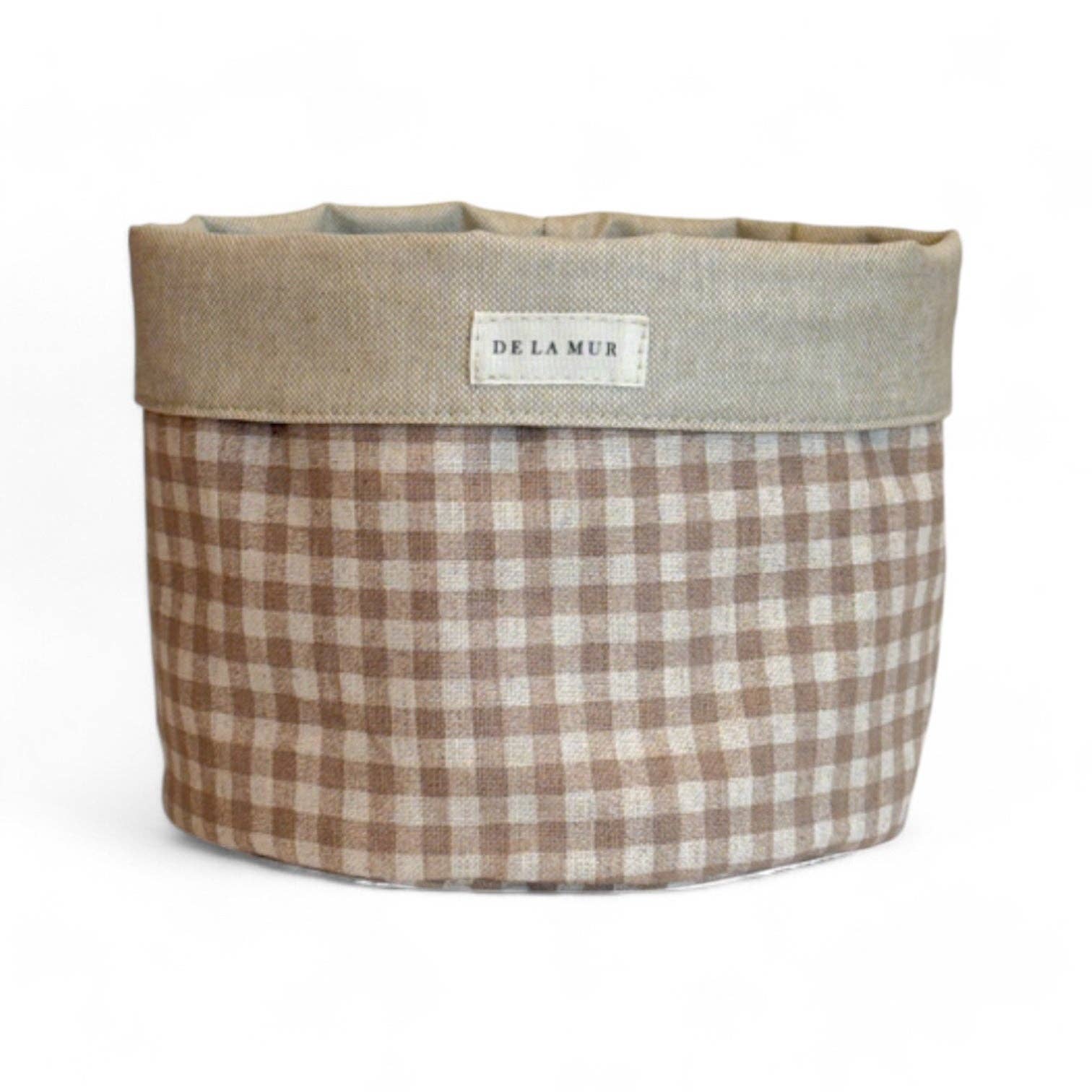 Panier moyen polyvalent. Avec un tissu fin de half-panama à carreaux vichy beige à l'extérieur et un tissu résiné à l'intérieur.
