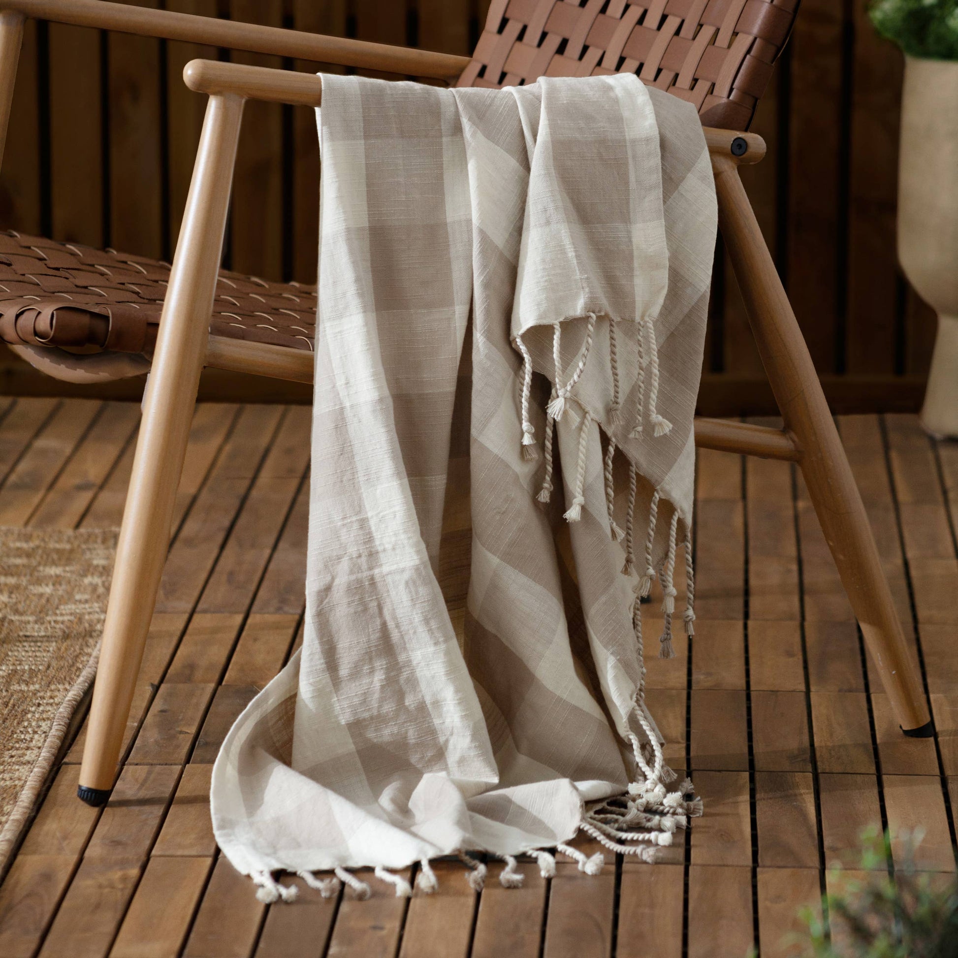 Tout savoir sur notre Plaid en Coton à Franges Vichy Naturel