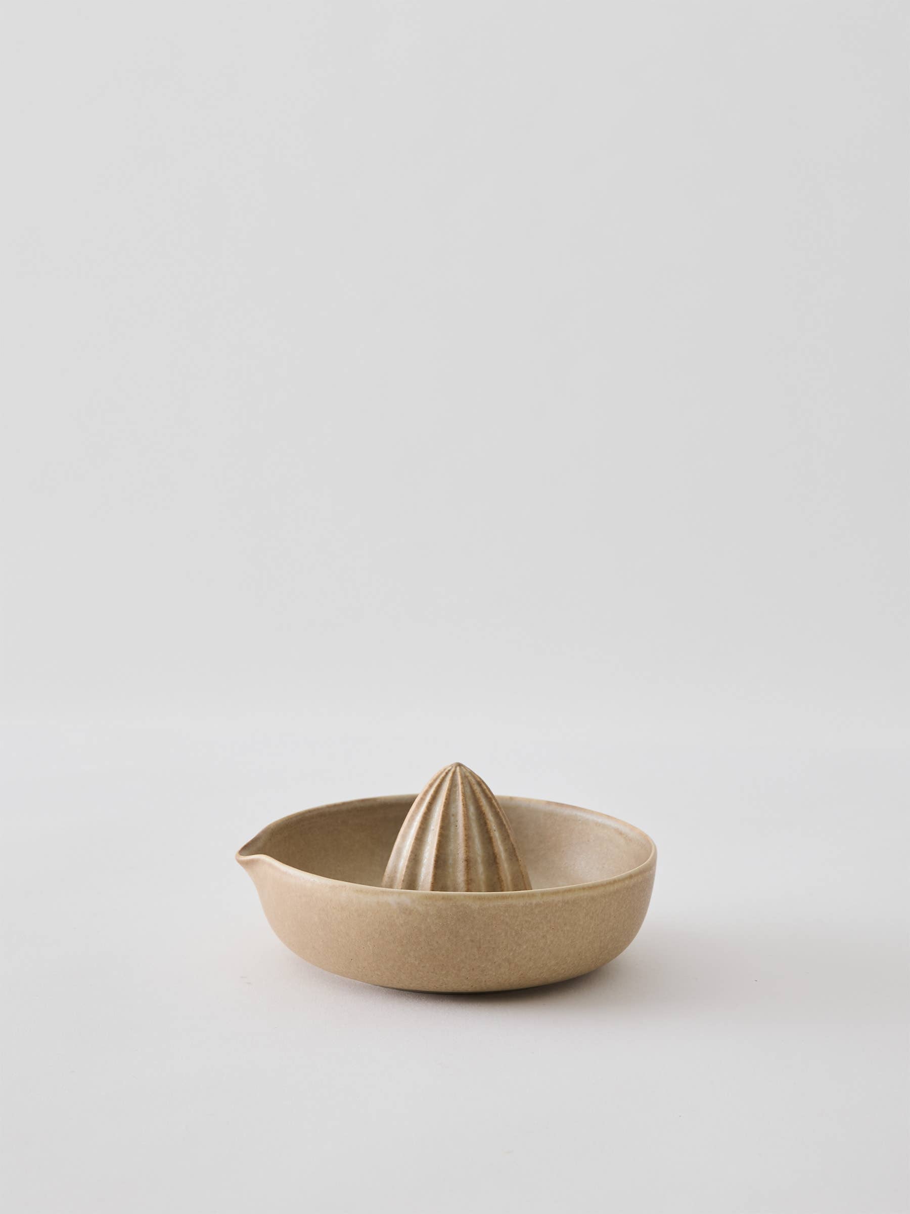 Presse-citron en grès émaillé, au design arrondi pour une extraction efficace du jus. Élégant et pratique.