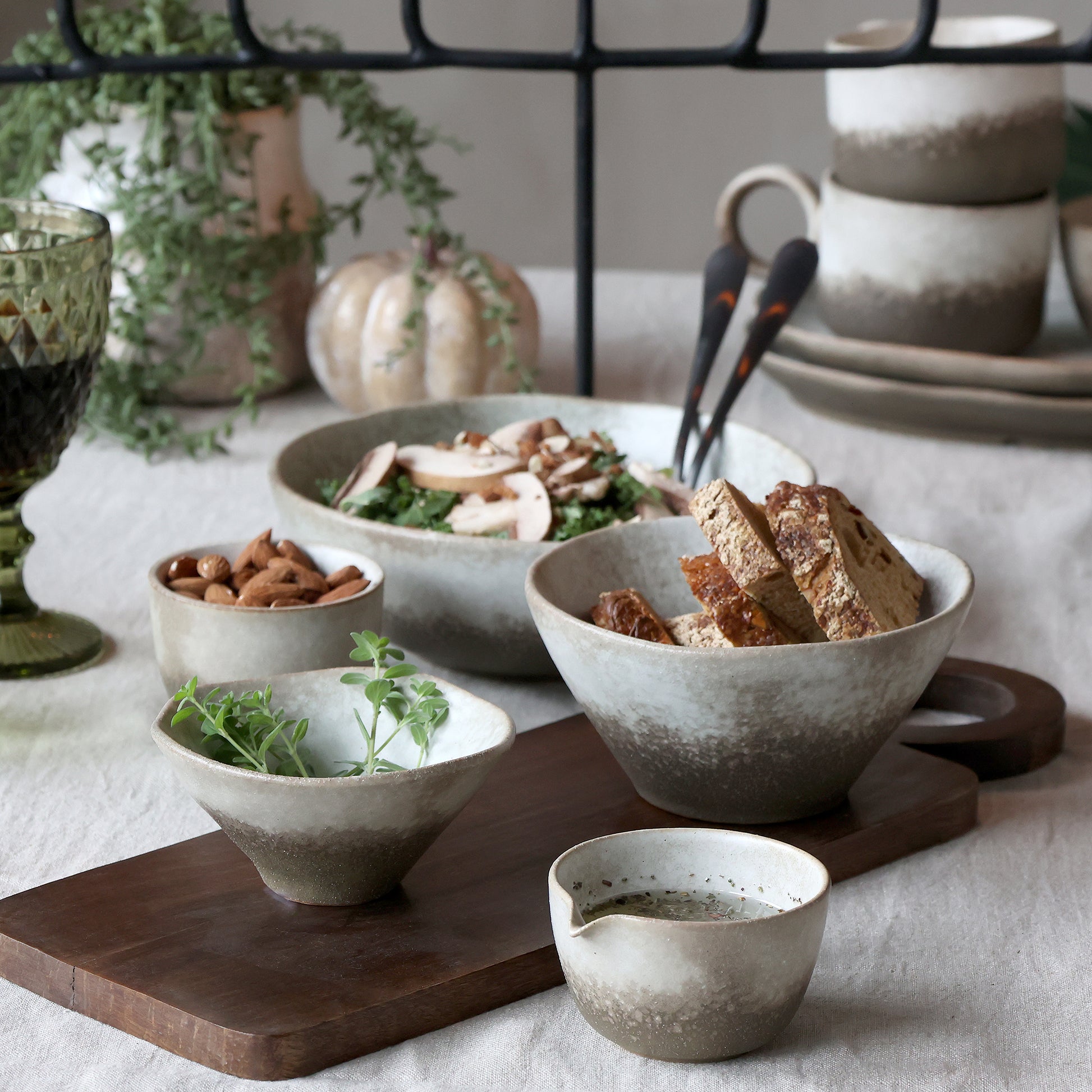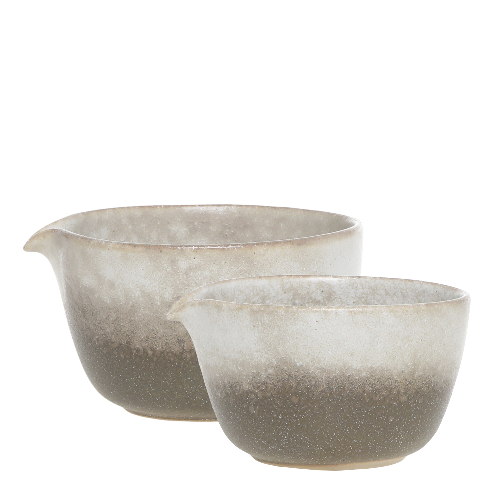 Ce set de deux bols à bec verseur en porcelaine complète à merveille la collection artisanale assortie. Conçus dans un style irrégulier et naturel, ils allient esthétique brute et fonctionnalité.