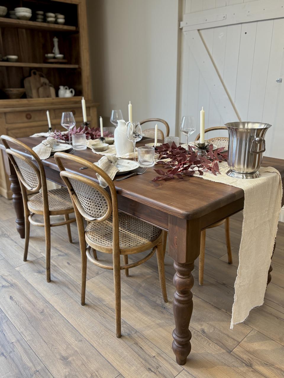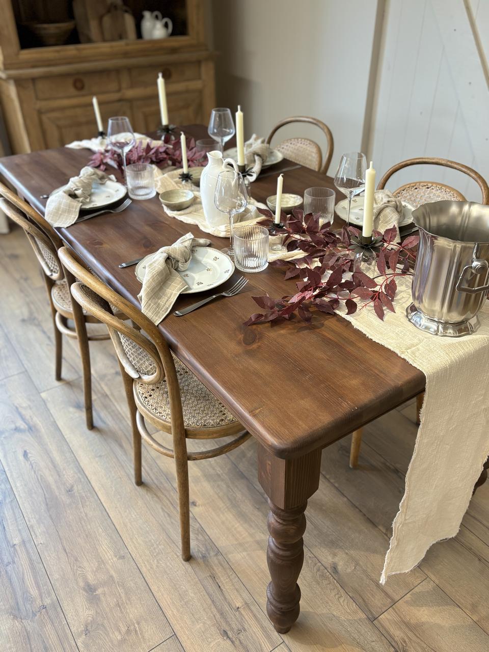 Élégante et intemporelle, cette table en pin restaurée allie le charme du bois massif à une silhouette chic et moderne. Parfaite pour sublimer votre salle à manger avec authenticité.