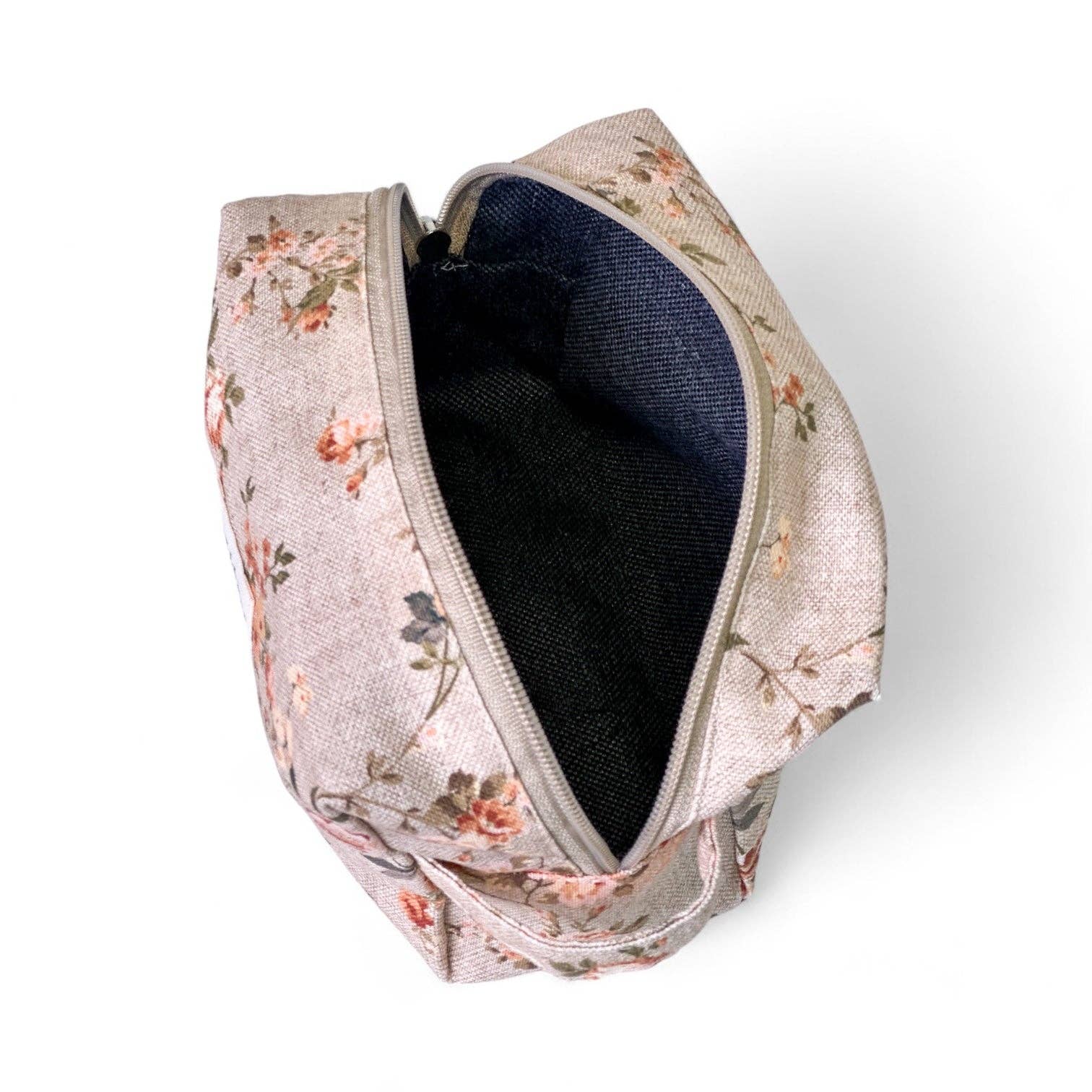 Enveloppez vos essentiels de beauté dans notre petite trousse de toilette Liber, ornée d'un délicat motif floral. Son intérieur doublé protège vos produits tout en ajoutant une touche d'élégance à votre routine quotidienne. Parfaite pour les voyages ou à garder sur votre coiffeuse, elle allie praticité et charme naturel.