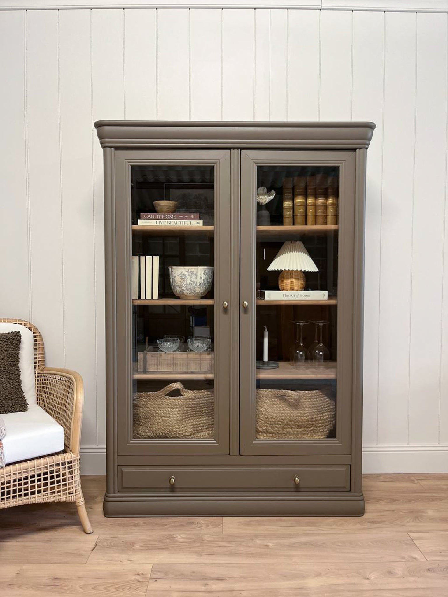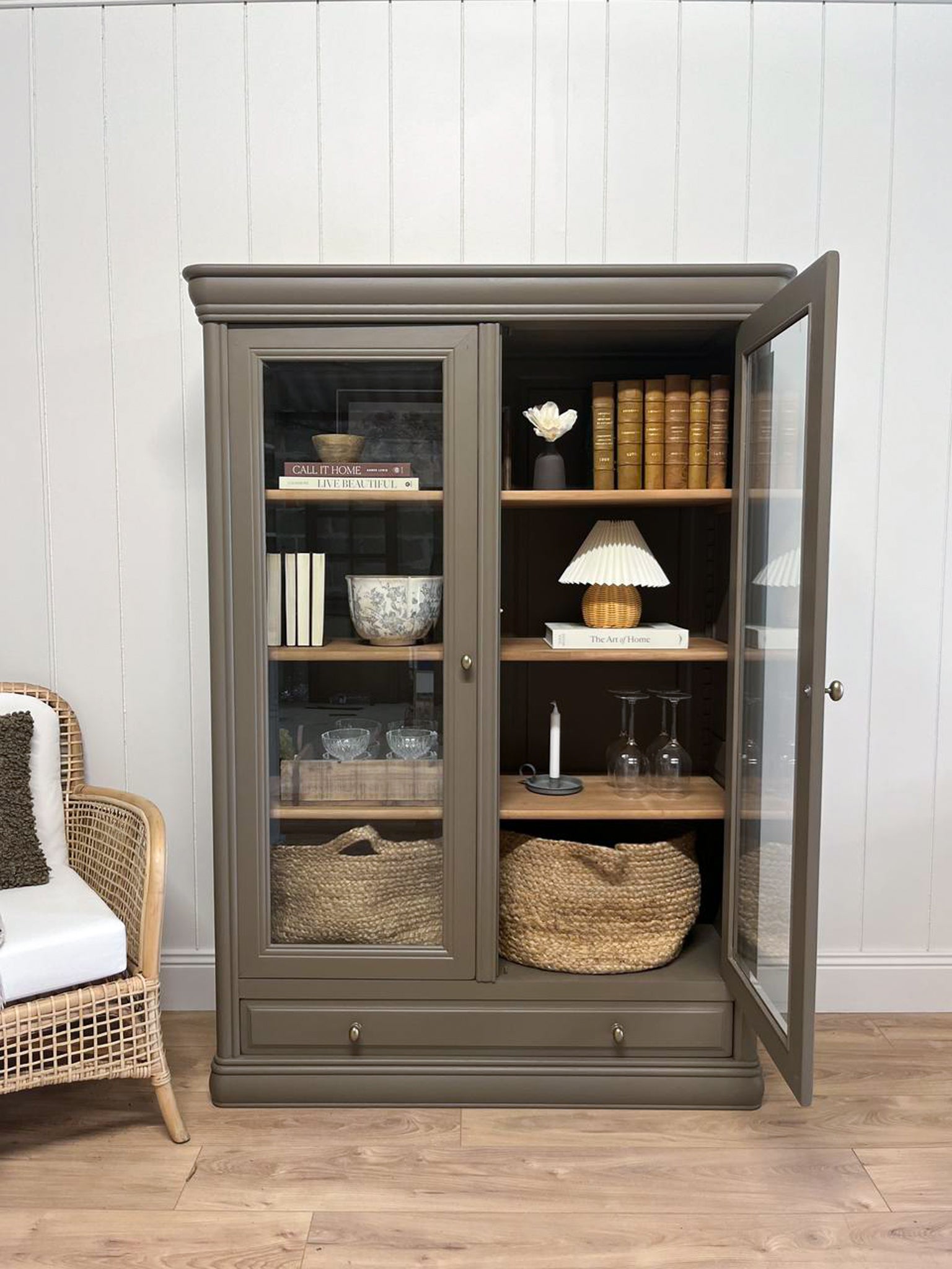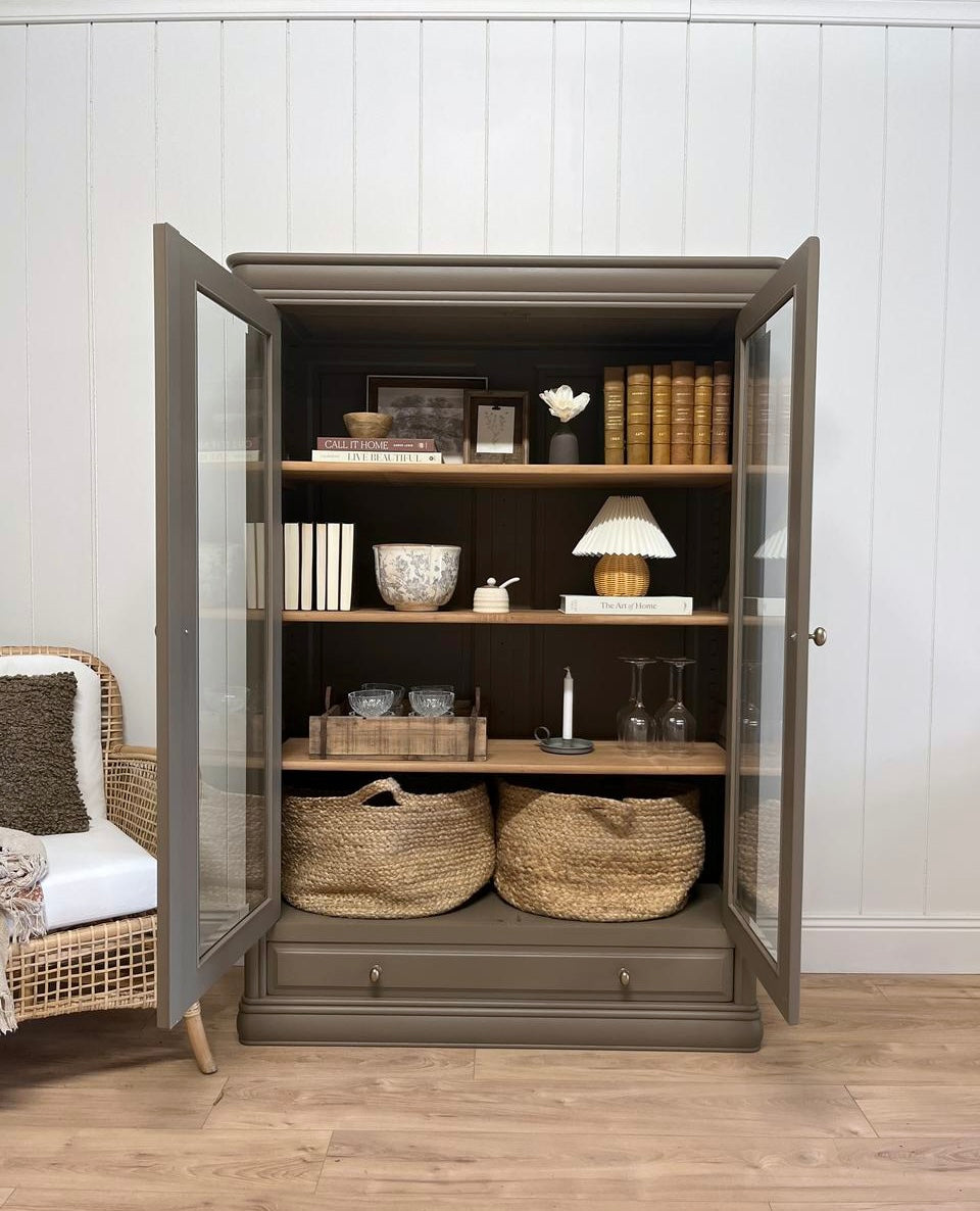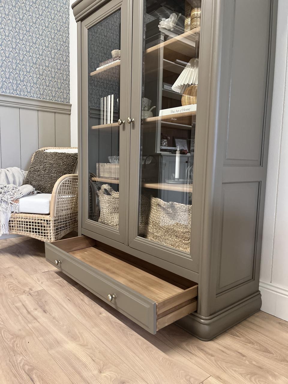 À propos de notre Vitrine kaki en merisier massif