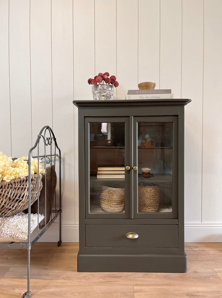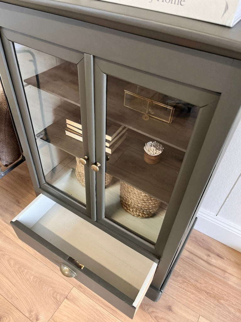 À propos de notre Vitrine merisier 2 portes/1 tiroir